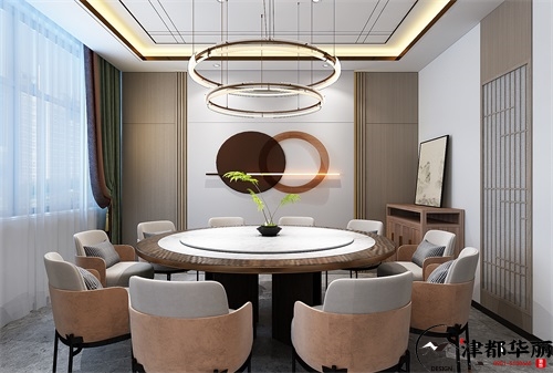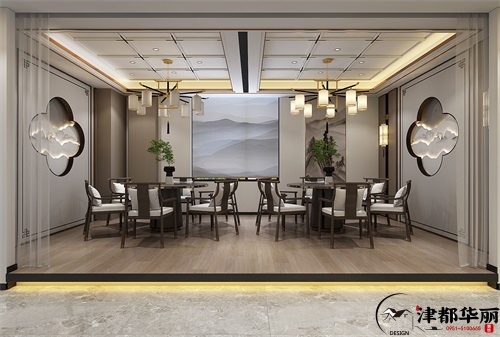 今天分享的是銀川中餐廳裝修設計案例,新中式風格在餐廳設計的時候對整體的色調是比較講究的,富有中國古典的韻味,又加入了現代的風格,以深色為主,代表的是深厚以及沉穩的底蘊,與中國傳統裝修的風格比較相統一。室內設計干凈整潔,不缺少主色,照明適當,加上中國風元素更有格局,設計線條簡潔硬朗,加上大理石與隔斷的使用,將現代元素和傳統元素結合在一起,表達出中式的清雅、端莊。對稱式的格局方式也顯得格調大氣、高雅,給顧客帶來移步換景的視覺效果,造型簡樸優美,色彩濃重而成熟。
