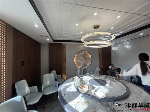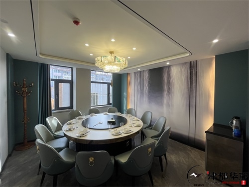 今天分享的是銀川金龍回坊火鍋店裝修設(shè)計(jì)實(shí)景,這家火鍋店裝修設(shè)計(jì)風(fēng)格以新中式國(guó)潮風(fēng)為核心,既保留了傳統(tǒng)餐飲空間的雅致底蘊(yùn),又通過現(xiàn)代手法注入年輕活力,精準(zhǔn)契合了當(dāng)下火鍋店裝修設(shè)計(jì)中“文化賦能+體驗(yàn)升級(jí)”的趨勢(shì)。從包間區(qū)域來看,火鍋店裝修設(shè)計(jì)的“輕奢質(zhì)感”被巧妙落地:墻面采用木紋飾面板搭配金色葉片裝飾,既借由木質(zhì)元素傳遞中式空間的溫潤(rùn),又以金屬細(xì)節(jié)提升宴請(qǐng)場(chǎng)景的精致感;圓形餐桌搭配帶有新中式線條的軟包座椅,淺白與墨綠的配色既呼應(yīng)了傳統(tǒng)美學(xué)的雅致,又通過軟包材質(zhì)保證了用餐的舒適感;頂部的圓形吊頂+水晶吊燈組合,既以“天圓地方”的傳統(tǒng)意象強(qiáng)化空間儀式感,又用燈光的暖調(diào)氛圍消解了商務(wù)包間的冷硬。