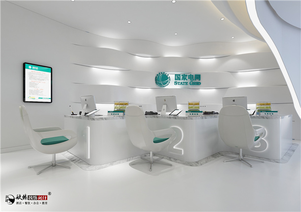 公告欄裝修:能源互聯網、智能科技是企業全新理念,電網無處不在,表示著企業的宏偉藍圖,電網上的工作人員,表示著企業的腳踏實地。新零售專區裝修:定制的辦公桌既可以辦公,同時對于空間也沒有過多的占有,這是設計師經過嚴密思考的結果,設計師希望給員工一個舒適的環境。形象墻裝修:道德風尚獎、榮譽證書、最佳銷售獎、優秀員工、火箭飛升獎,這些獎狀是企業的凝練,從獲獎中可以看到企業從小到大的經歷。