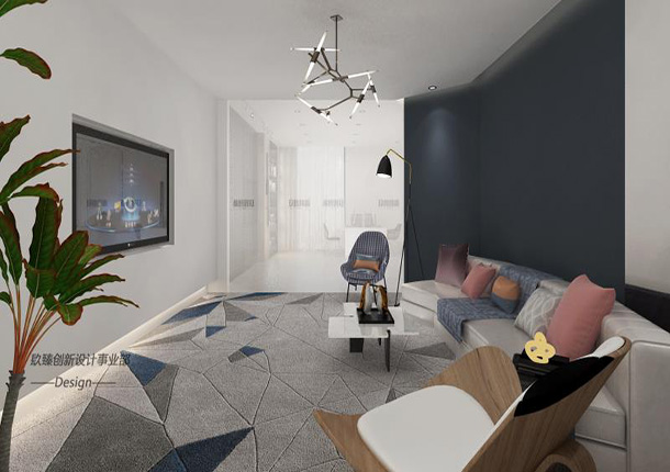 洽談區也以大片的黑白色為主,鋪滿整個房間的大塊地毯,將整個空間提升了一個檔次,觸摸大屏的智能電視,為洽談提供了更便利的條件,舒適溫馨的沙發抱枕也可以使來訪者更加放松愉悅。
