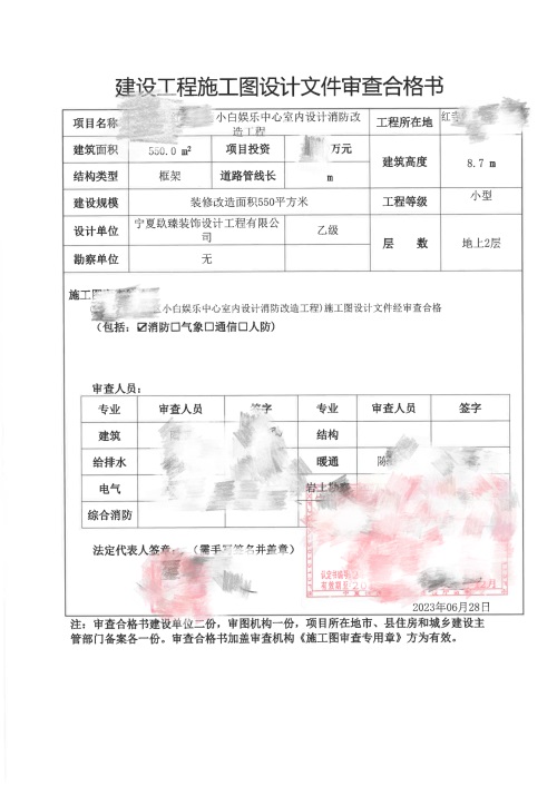 銀川消防設計推薦|銀川小白燒烤店消防審圖合格報告書