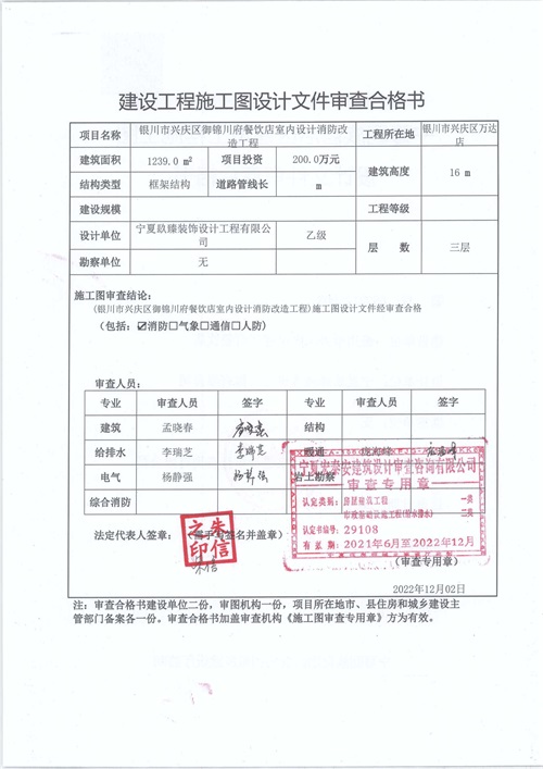 銀川餐廳消防圖紙設計|銀川餐廳消防審圖合格報告