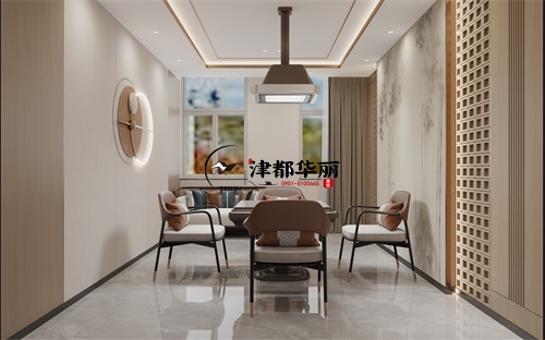 今天分享的是銀川茶樓裝修設(shè)計(jì)項(xiàng)目效果圖方案,本案茶樓設(shè)計(jì)融合了傳統(tǒng)文化與現(xiàn)代元素,既傳達(dá)了對(duì)中國傳統(tǒng)文化的熱愛,又體現(xiàn)了現(xiàn)代生活方式的和諧共存。空間按承載了傳統(tǒng)的回歸以及對(duì)當(dāng)代的全新闡釋,提煉特色中式視覺符號(hào)賦予空間文化意義與精神內(nèi)涵,帶給來訪者閑適的空間體驗(yàn),也是對(duì)氣質(zhì)空間美學(xué)的完美詮釋!茶樓的茶香、掛畫無不體現(xiàn)禪意細(xì)節(jié),暖光照耀下,詩意不言而喻。一處茶席,一套茶具,一盆景觀,幾張木椅,簡約不失簡單,可觀、可品、可游。室外自然景色融入室內(nèi),延申了空間的氛圍與氣韻,給予來訪者更豐富的視覺層次和心靈體驗(yàn)。設(shè)計(jì)將雅棕色提純,并運(yùn)用為空間的主調(diào),釋放自然、素雅且靜謐的空間氣質(zhì)。